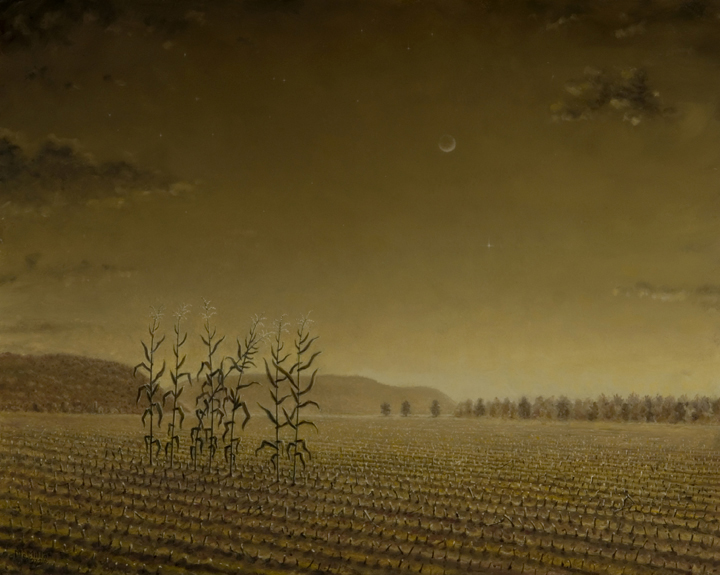 Painting, "Cornstalks at dusk" an original oil on panel,