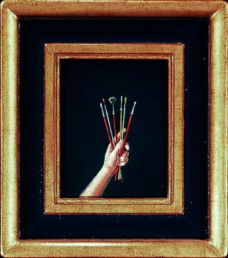 Paul McMillan Miniature Figurative Painting Bouquet of Brushes Miniature 4"x 5" Image Oil on Panel No. 311 Sold