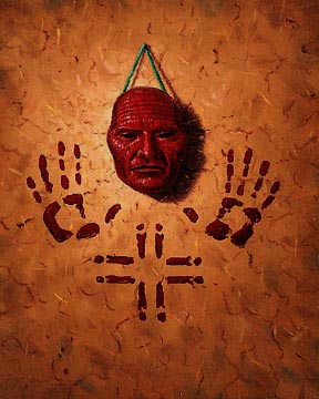 Paul McMillan Miniature Figurative Mask Painting Masks #2 of a 4 Set of Four, 4"x 5" images Oil on Panel No. 313b Sold.