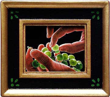 Paul McMillan Miniature Figurative Painting Wild Grapes Miniature 4"x 5" image Oil on Panel No. 327 Sold. Paul McMillan miniature oil paintings have jewel like details with finely blended smooth surfaces that show a little brushwork. Each miniature painting has a guilded plaster frame made by the artist.