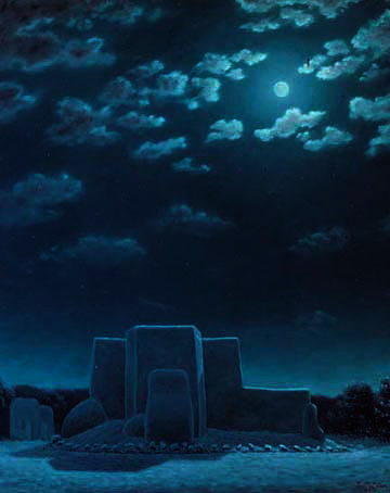 In this Southwestern Night Scene Painting, "Harvest Moon Over Ranchos," an original oil on panel, I was inspired to represent the feel of the abstract qualities of the earthen walls and architectural design of this ancient place of worship in the town of Ranchos, New Mexico. One would think that considering the millions of dollars that are deposited in the coffers in the town of Taos in the pursuit of painting and photographing this very interesting piece of Northern New Mexico architecture that someone there in that stubborn little village would wise up and move those damned electric lines that have been in the way of every living artist since the first one showed up nearly a century ago to paint and photograph this visual treasure. Yes, whilst I lived in Taos for ten years, regretably, I tolerated the blatant stubbornness, ignorance, as well as the violence, proudly rooted and machisically cherished by many of the region. One should look at the record before shooting the messenger. At least I got out alive, so I will say what I want to about the place. It is a most beautiful place, but it is not safe there in the area. |
