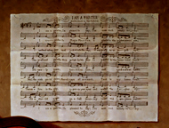 includes a complete song with melody on a sheet of paper as well