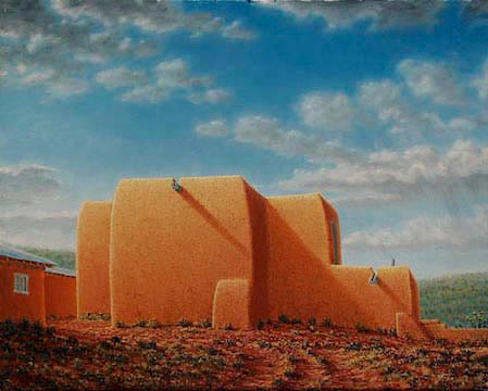 old Adobe Church in Las Trampas New Mexico. The adobe architecture