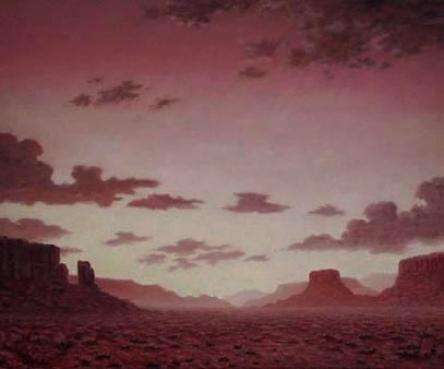 In this Southwestern Landscape Painting,"Indian Morning," an original oil on panel, I was inspired to paint my impression of an unbelievable crimson sunset previously seen while visiting Monument Valley, AZ. Painted from memory.