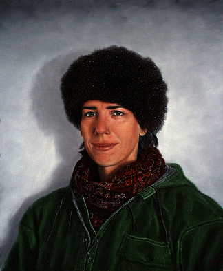 "Carolyn with Possum Hat and Shepherd's Coat" 24" x 20" image Oil on Panel No. 161 In a private collection