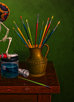 putting out the basic supplies for "El Pintor" in the