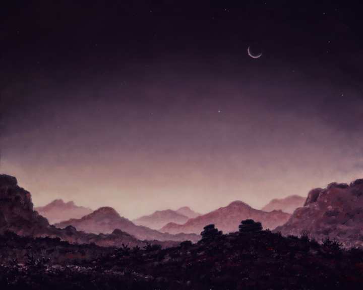 - In this Southwestern landscape painting, "Purple Haze," an original oil on panel, I was inspired to create a painting using only alizarin crimson, ivory black and a white that is an ivory tone. This painting composition is purely from imagination in an honest attempt to allow myself ultimate freedom in the arrangement. This is not a real place so I give myself the privilege of freely arranging the elements in the subject to pursue the best drama and luminosity possible. Here in this painting, keeping it simple was the way I chose to arrive at my desired outcome. Painting in a near monochrome often frees the faculties of mind allowing me to give my all to the subject. I have always loved the desert, it's totally honest and you cant argue with such greatness in the face of its' ancient wisdom, but you can of course speak to it in many ways. I choose paint.