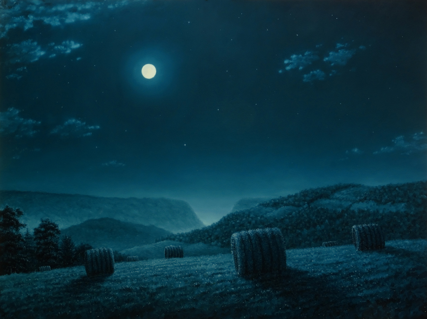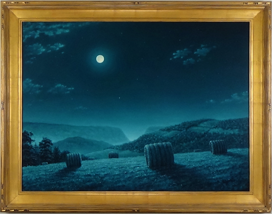 "Hay Bales Nocturne," an original oil on panel, I was