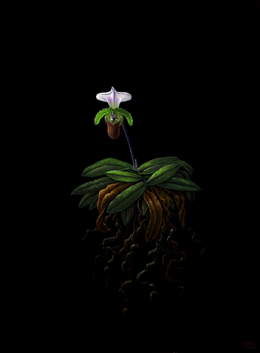 - In this nuevo classical Floral Still life Painting, "Transluencies of Orchid" an original oil on panel, I wanted to examine the beauties of a wonderful orchid that finally bloomed after many years of silence. The wait was worth it for me and I near had to re-learn how to paint in order to best show the sun lit translucencies of such delicate blossums along with and in admiration of the processes of the degrading leaves and such that come along with the moment of an incredibly wonderful blossum. Welcome to my painted world in celebration of orchid blossums and a bit more....