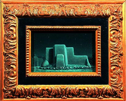Paul McMillan Miniature Southwestern Night Scene Painting Ranchos Night Miniature 4"x 5" Image Oil on Panel No. 308 Sold