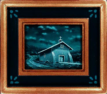 Paul McMillan Miniature Southwestern Night Scene Painting Penasco Church Miniature 4"x 5" image Oil on Panel No. 317 Sold. Paul McMillan miniature oil paintings have jewel like details with finely blended smooth surfaces that show a little brushwork. Each miniature painting has a guilded plaster frame made by the artist.