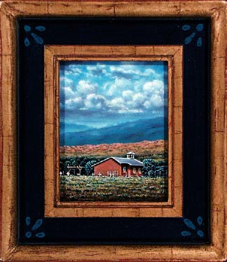 Paul McMillan Miniature Southwestern Landscape Painting Black Mesa Church Miniature 4"x 5" Image Oil on Panel No. 323 Sold Paul McMillan miniature oil paintings have jewel like details with finely blended smooth surfaces that show a little brushwork. Each miniature painting has a guilded plaster frame made by the artist.